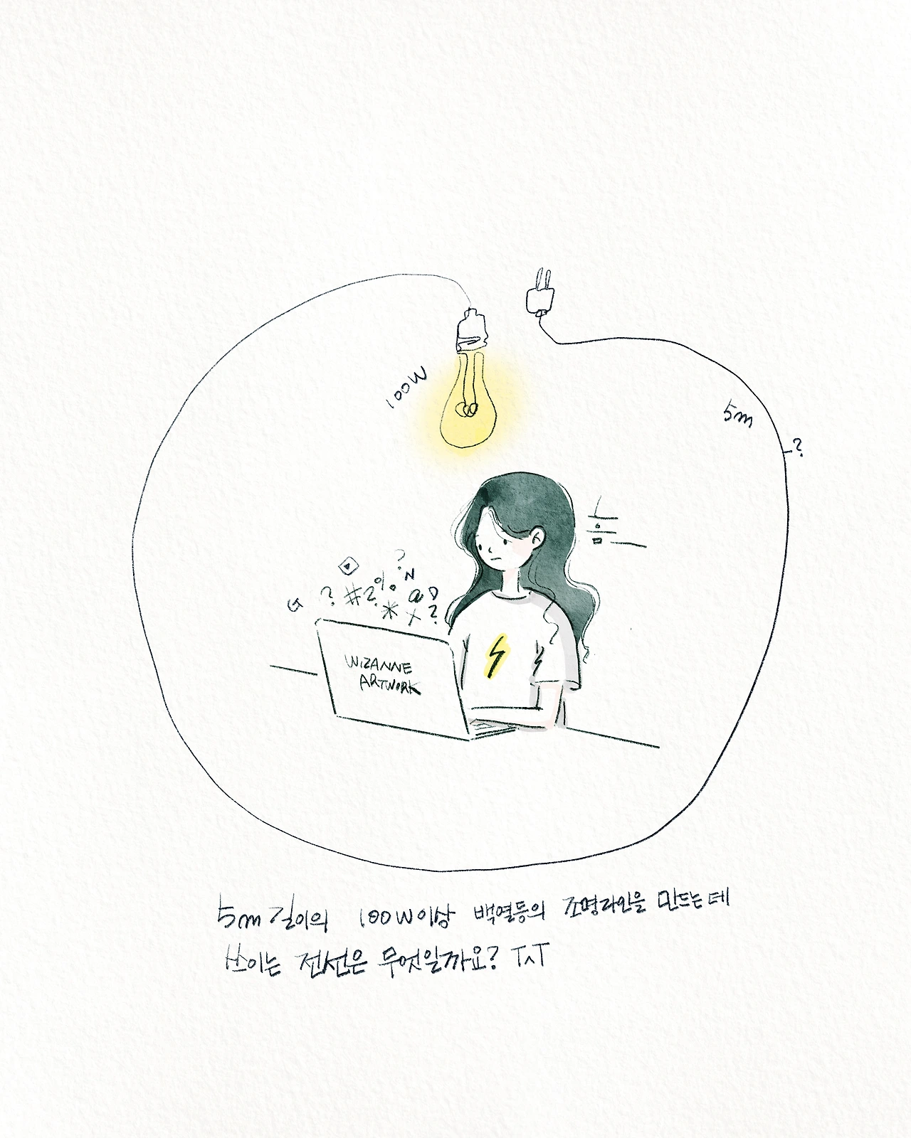 5m 이상의 조명 라인을 만들어야 하는데 100w 백열등을 사용해야 하거든요.(LED X)