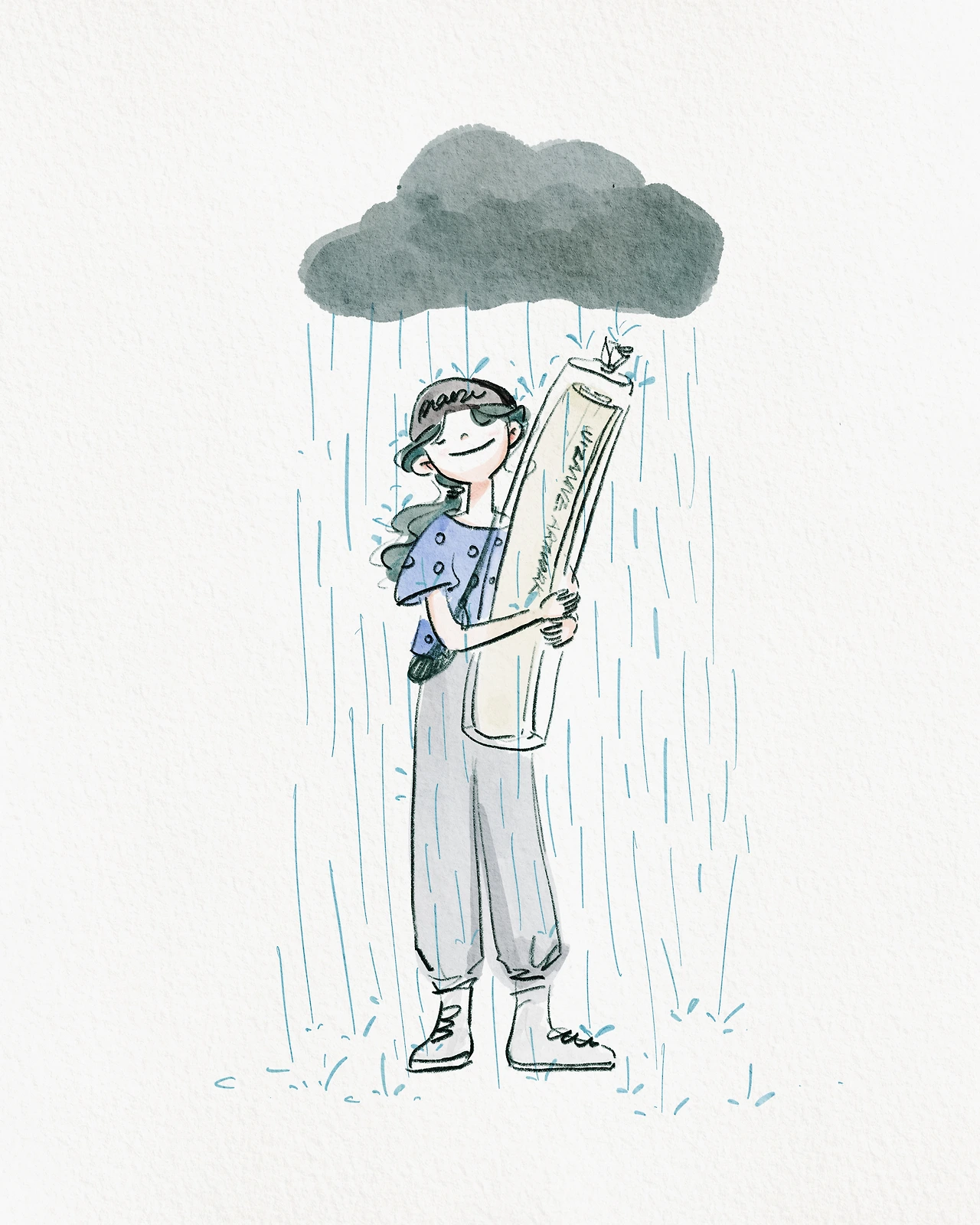 버스 정류장에서 얼마 멀지 않은 집까지 오는데 흠뻑 젖을 정도로 말이죠.