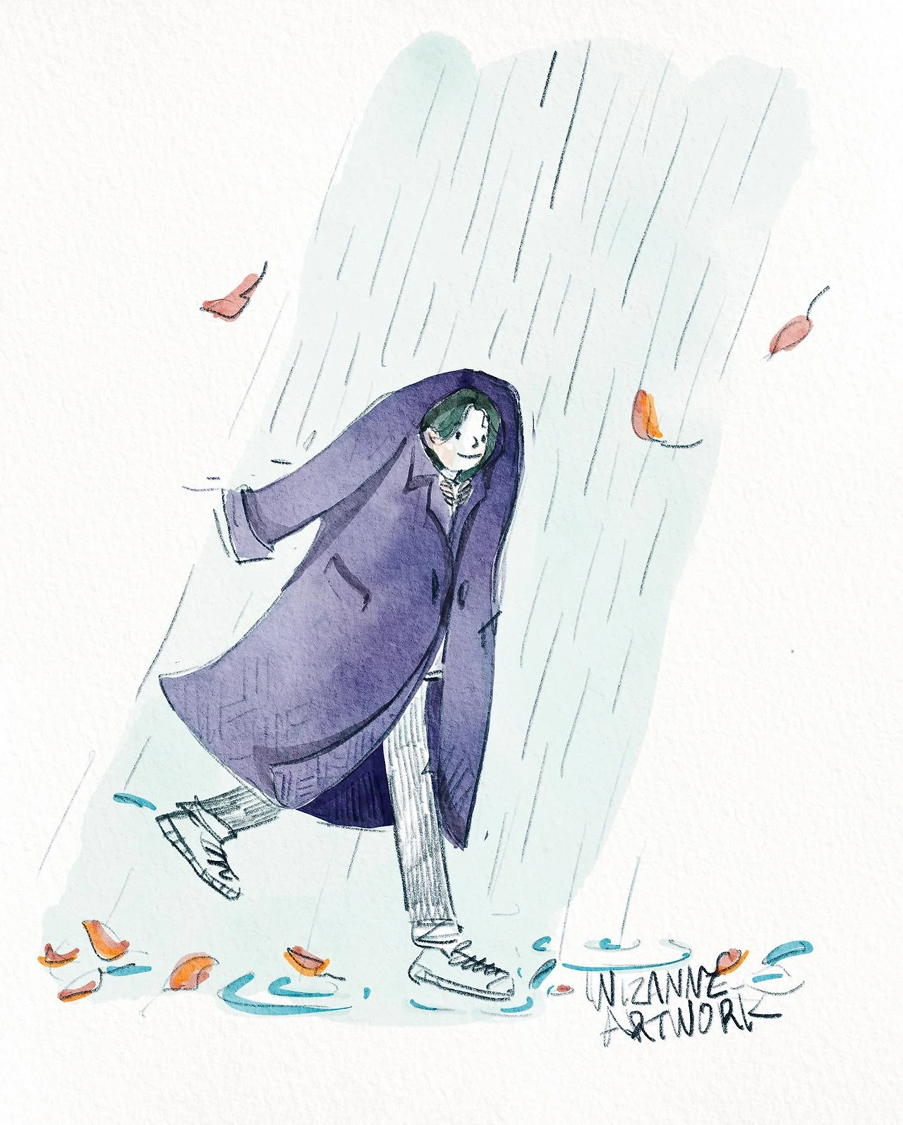 버스 정류장에서 그치길 잠시 기다렸는데 더 세게 쏟아지기에 혼자 노랠 부르며 뛰어왔어요.