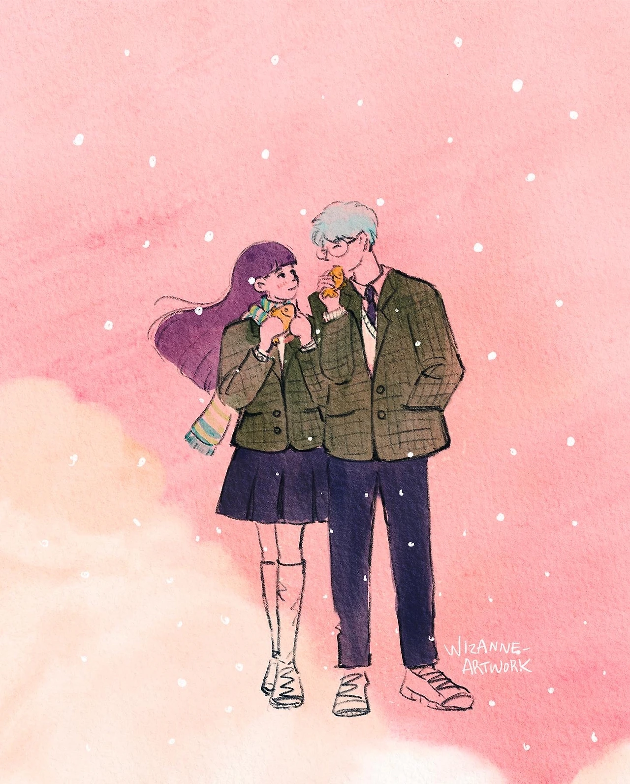 544일. 붕어빵을 먹는 학생 커플