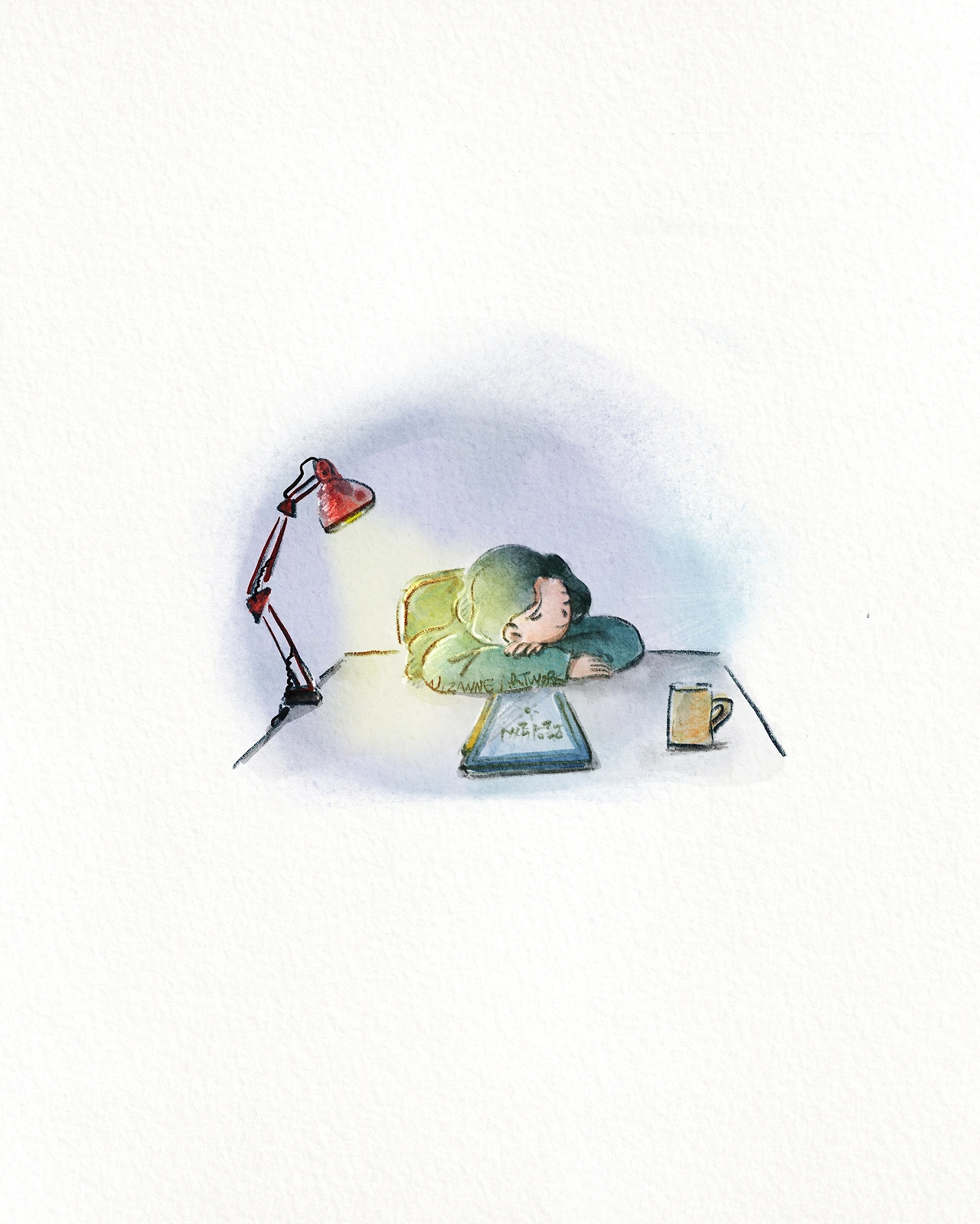 오늘도 열심히 작업했고 밤이 되었고 잘 시간이 가까워졌습니다.