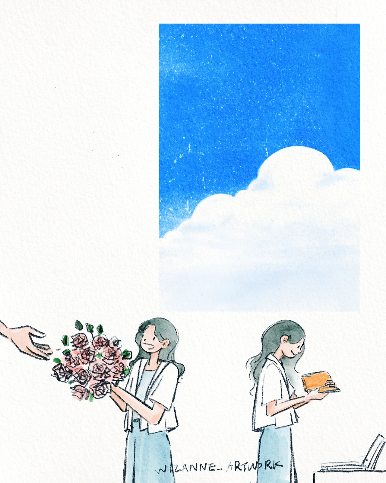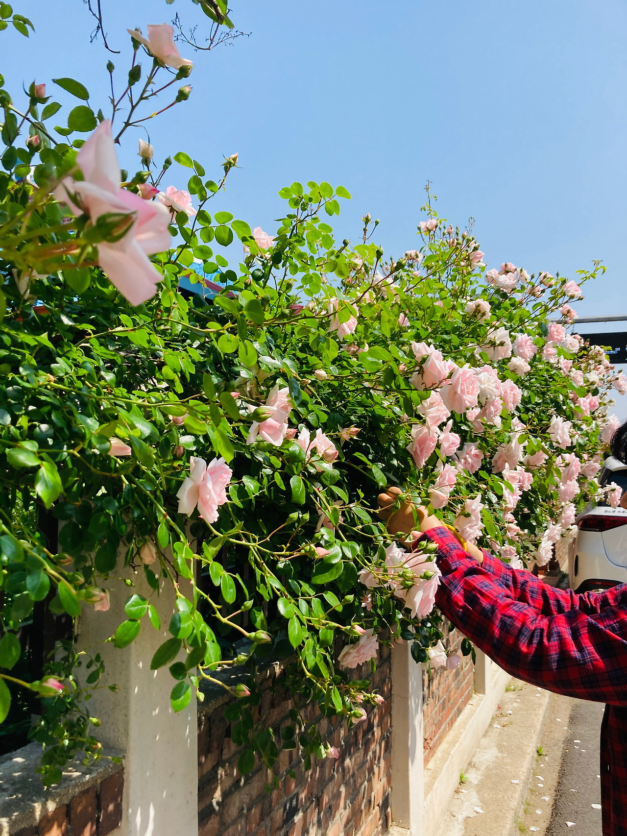 “오! 아녀요. 주세요. 어젯밤에도 여기 지나면서 장미가 너무 예쁘다 했는데 이런 행운이. 너무 고맙습니다. 아는 지인이 근처 공방을 해서 가져가면 될 것 같아요. “