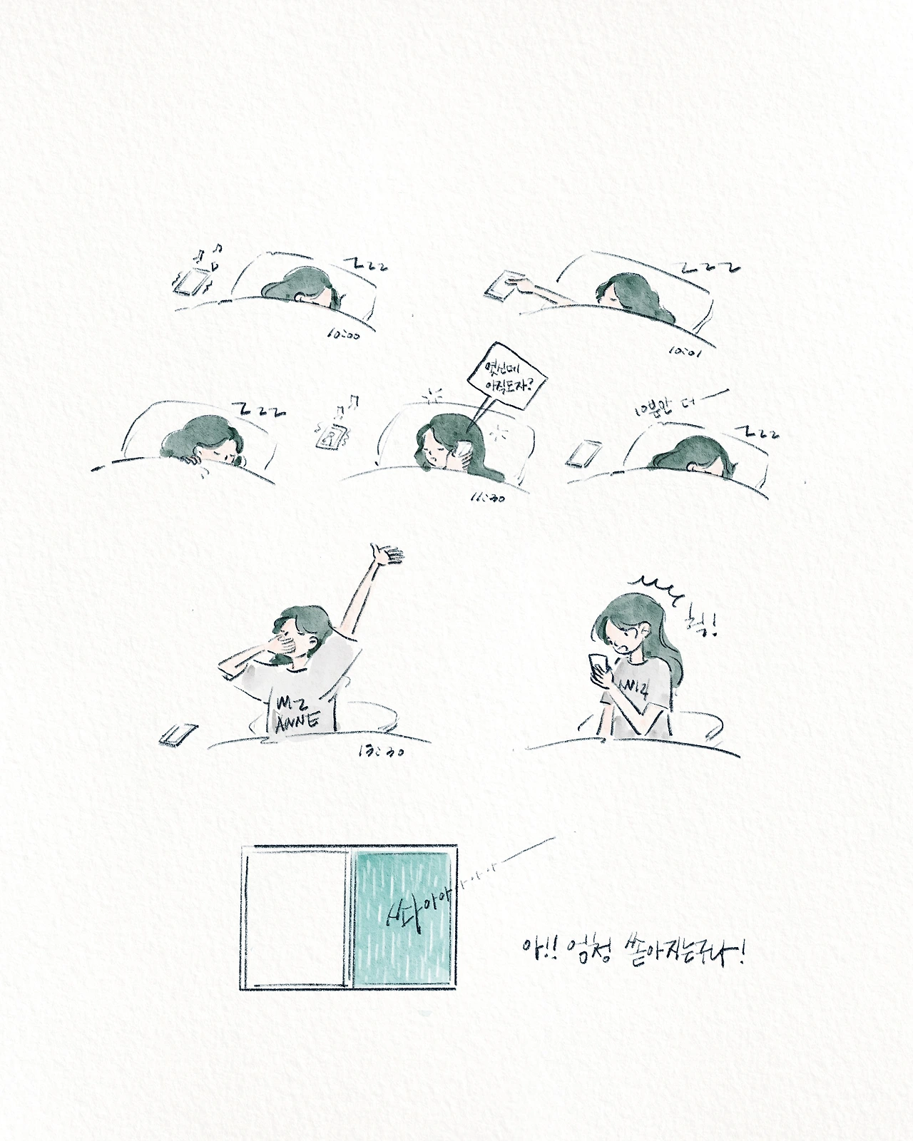 이렇게나 많이 잤다고? 싶어서 창문을 열면 비가 엄청 쏟아지고 있을 확률이 90%.