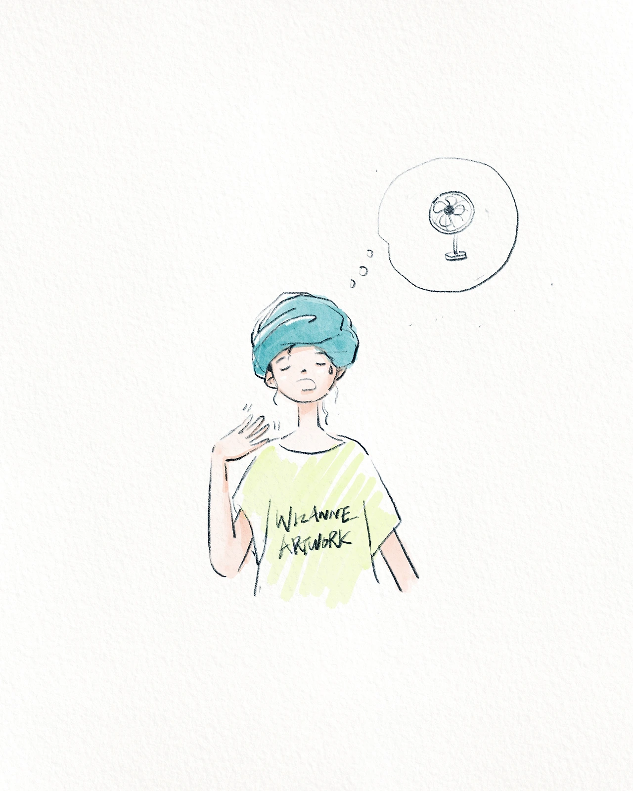 샤워 후 덥다는 것은 선풍기를 꺼내야 한다는 뜻.