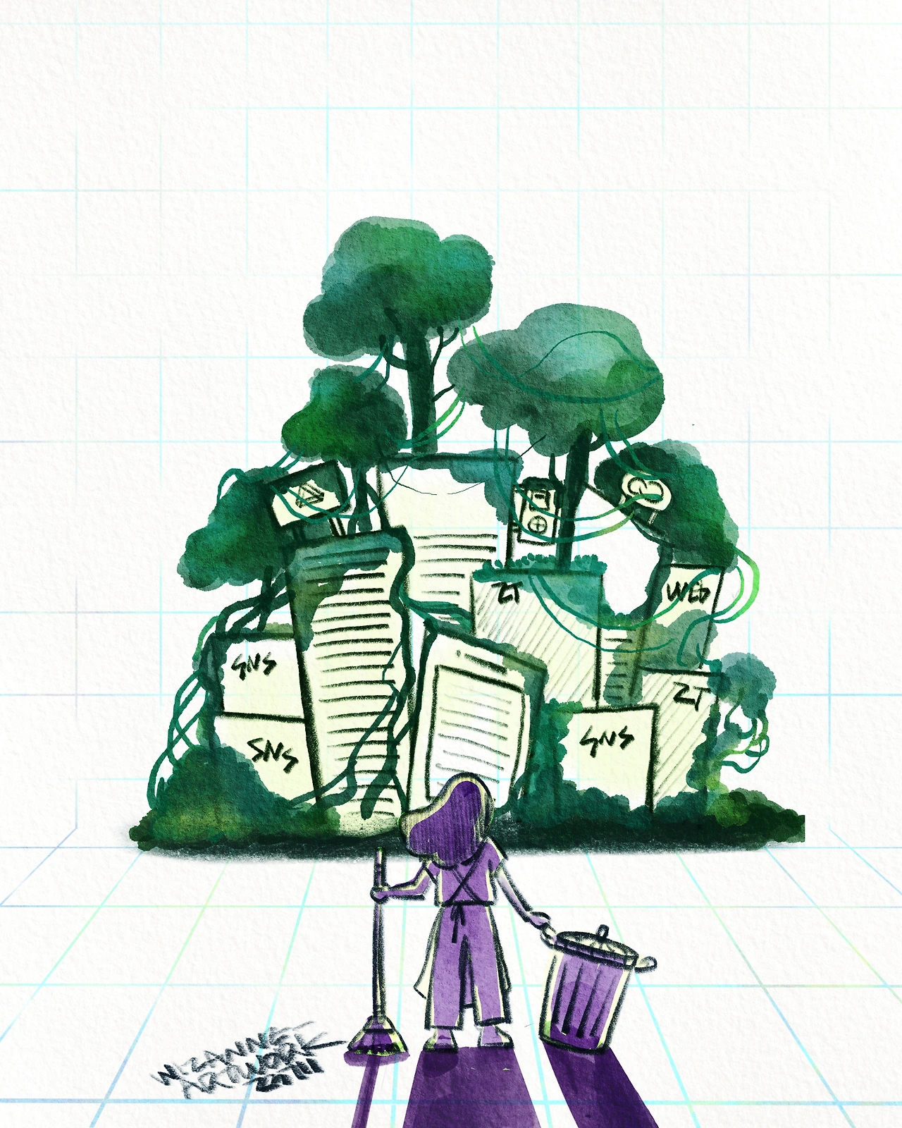 휴대폰, 아이패드, 구글, 카카오 톡서랍, 어도비 클라우드, 네이버 클라우드, icloud, 본체의 SSD 2개, 2T 외장하드 2개, 각종 몇 년에서 십 년 가까이 쌓여있는 SNS의 데이터들…….