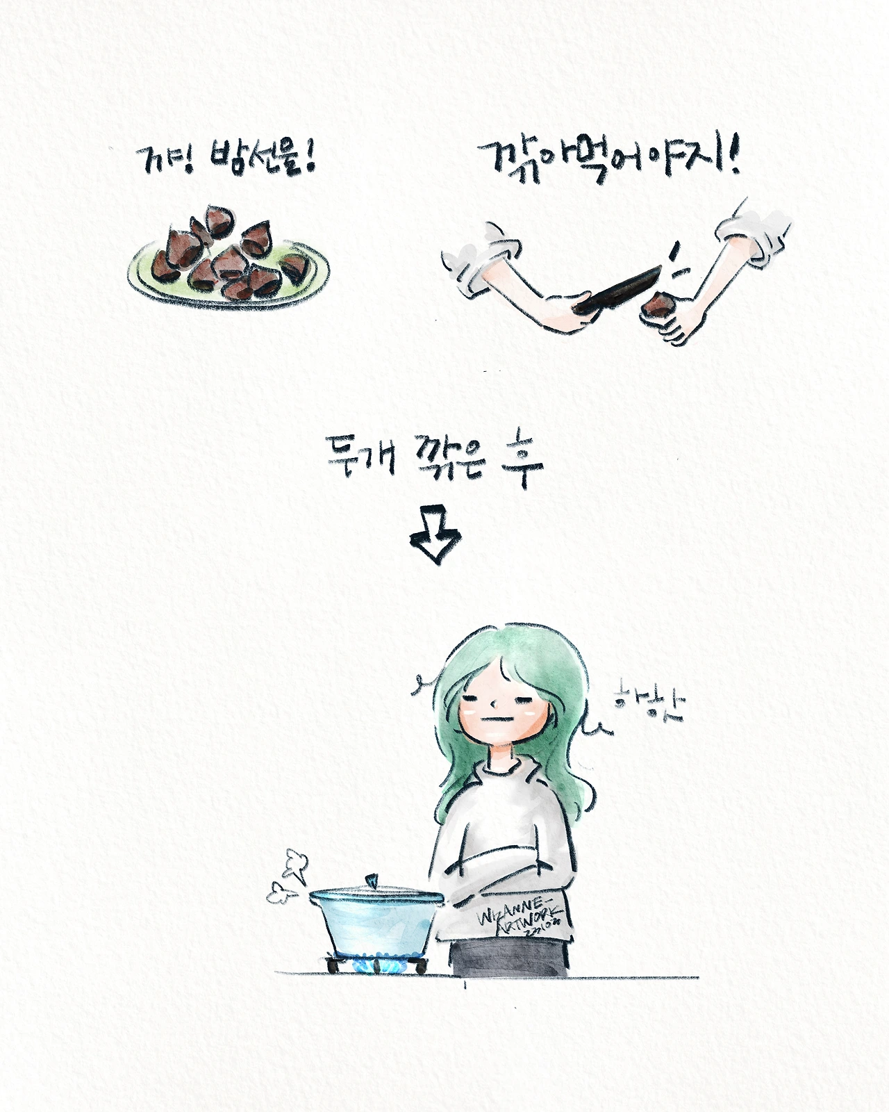 뭐. 밤은 삶아도 구워도 맛있죠. 하. 하. 하