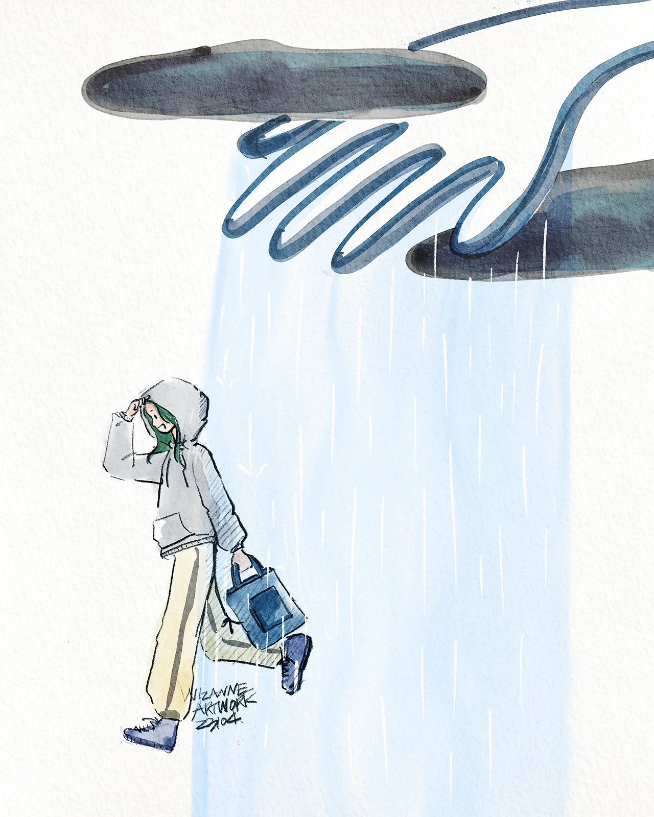 오늘 저녁부터 비가 온다더니 저 구름이 그 구름인가 보다. 이런 이야기를 하는 중.
