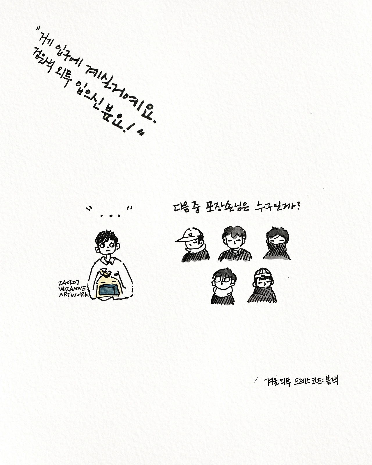 “바깥에 갔더니 검은 외투 입은 사람만 있는 거 아닐까요?