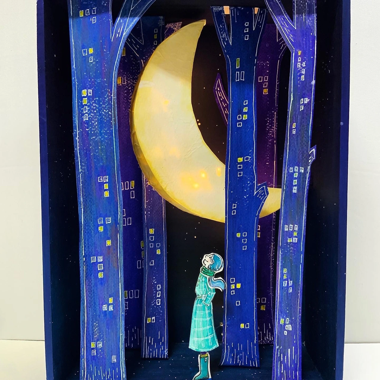 빌딩 사이로 커다란 달이 비추면 그것이 또 작은 위안이 됩니다.
