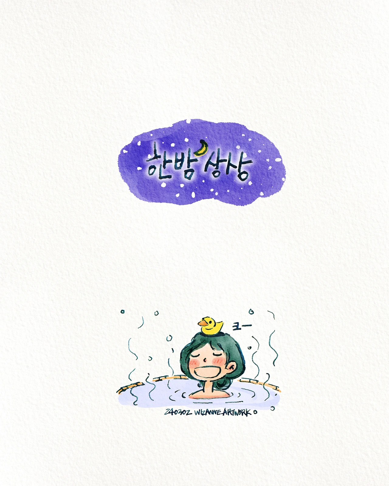 신기한 것은 온천을 떠올리거나 그리면 정말 따뜻한 물속에 들어가는 기분이 들곤 합니다.