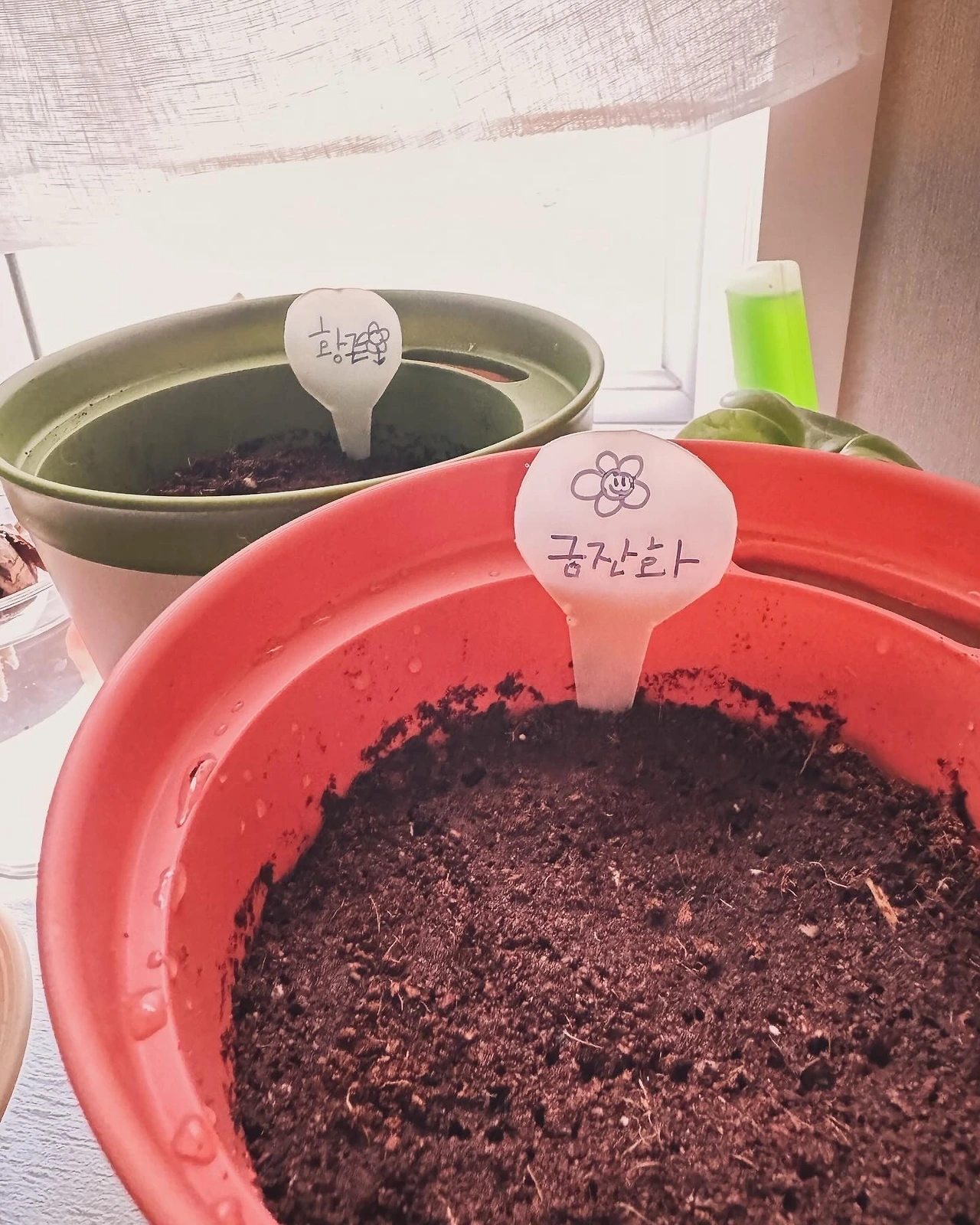 거기에 ’아. 오늘은 날이 좋으니 미뤄두었던 씨앗을 심자! ‘ 라며 씨앗을 심기도 했어요. ㅋㅋ