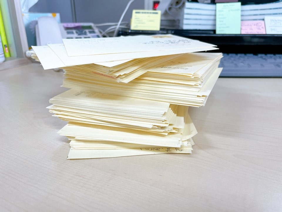 굳은 다짐으로 느린 우체통에 넣기 전, 몇 가지 문제가 발목 잡았다. 첫째, 우편주소가 안 적혔거나 예전 번호다. 주소를 일일이 검색하고 찾아내면 되지만 시간 부담이 되었다. 둘째, 당시 우편요금은 240에서 270원, 지금은 350원으로 적게는 80원, 크게는 110원의 차액이 발생한다. 차액을 지불하지 말고 현재 구매해둔 엽서에 기존 엽서를 붙여서 보내라는 동료의 조언은 고마웠지만 고생길이었다. 셋째, 5년 전 편지를 보내는 건 아니라는 팀장님의 결론이 있었다. 차액이야 지불하면 되지, 마지막 단계로 팀장님께 편지를 보여드리며, 꼭 보내줘야 한다며 설득해보았지만 돌아온 답은 ‘당시 편지를 보내지 않은 직원을 찾아 하나하나 읽으며 파쇄하게 하라’는 거였다.