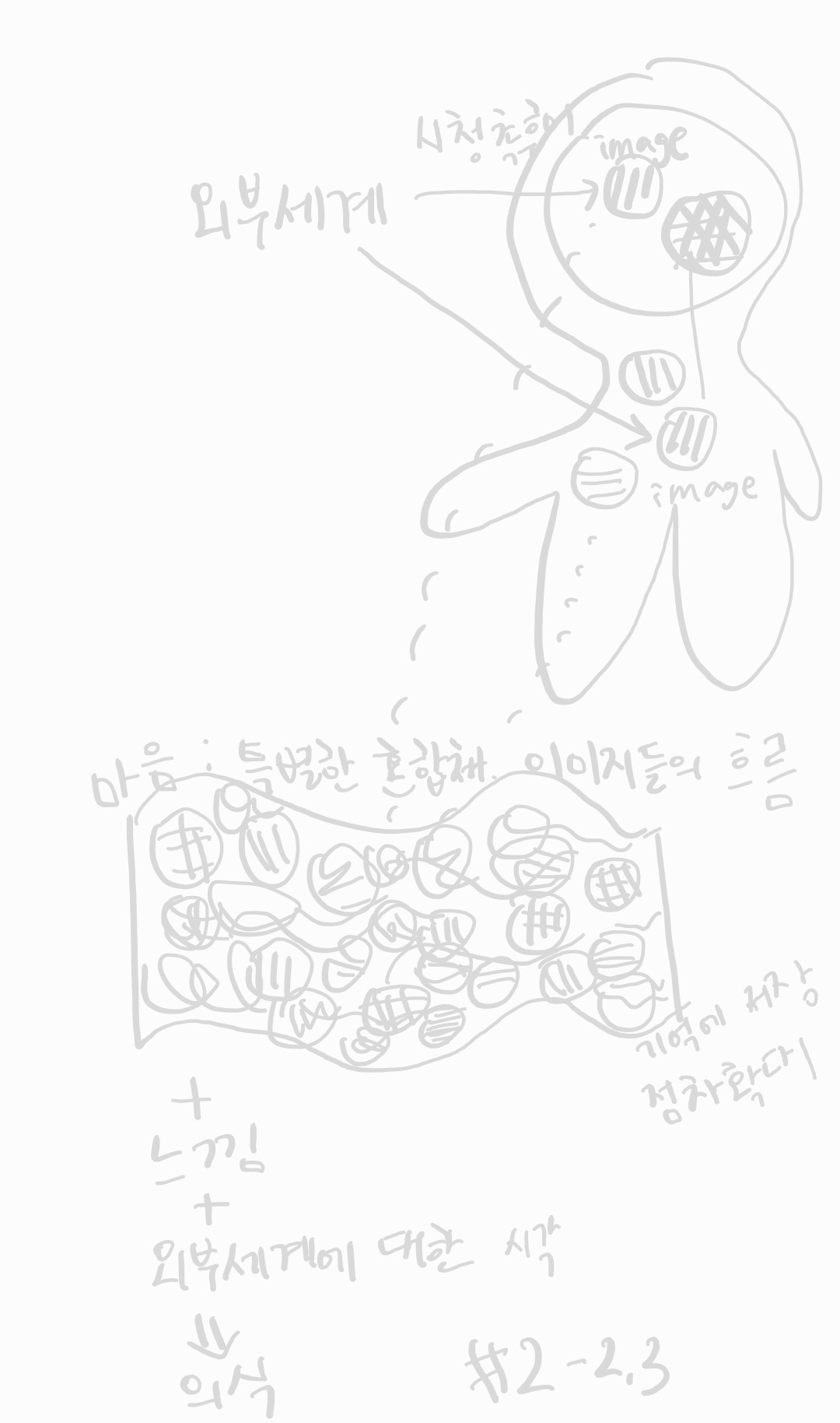 마음에는 이런 이미지들이 거의 빈틈없이 가득 흐르고 있으며, 여기에 내외부의 변화를 인식하는 느낌과, 주변 환경에 대한 관점이 추가된 특정한 상태가 곧 의식이 된다. 한의학을 제대로 하기는 정말 어렵지만, 알면 알수록 너무 매력적이고 감탄스러울 만큼 뛰어난 학문이라는 의식이 든다. 한의학은 객관적으로 측정 가능한 환자의 수치 정보뿐만 아니라, 환자와 나 사이 그리고 나와 환자를 대한 나 사이에 모든 쌍방향 지각을 통한 느낌까지도 정보로써 활용해야 하기 때문이다.