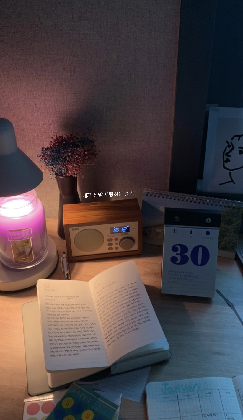잠들기 전 오늘 일어난 일을 다이어리에 간단하게 적고 그날의 생각과 감정을 일기에 담는다.