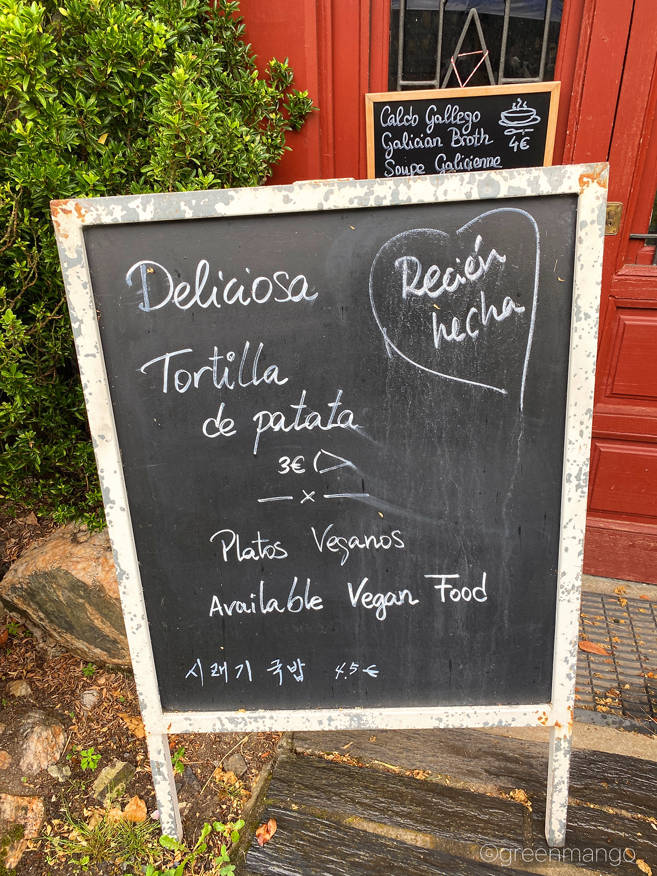 나중에 찾아보니 이 음식은 '칼도 가예고(Caldo Gallego)'라 불리는 갈리시아 지방의 전통 수프였다. 보통은 콩과 감자, 케일, 순무(turnip) 등이 들어가는데 지역에 따라 초리조(Chorizo, 스페인식 소시지)를 넣는 곳도 있다고 한다. 시래기처럼 생긴 풀이 케일이었나 보다.