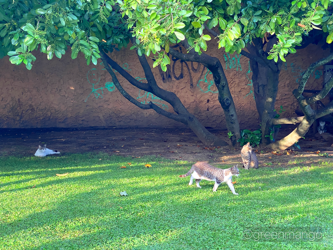 엘리스의 토끼마냥 인간이 지나가든 말든 각자의 볼일에 몰두하고 있는 고양이들. 번뇌 많은 결계 밖의 인간이 신기한 듯 어쩌다 한 번 힐끗 눈길을 줄 뿐이다.