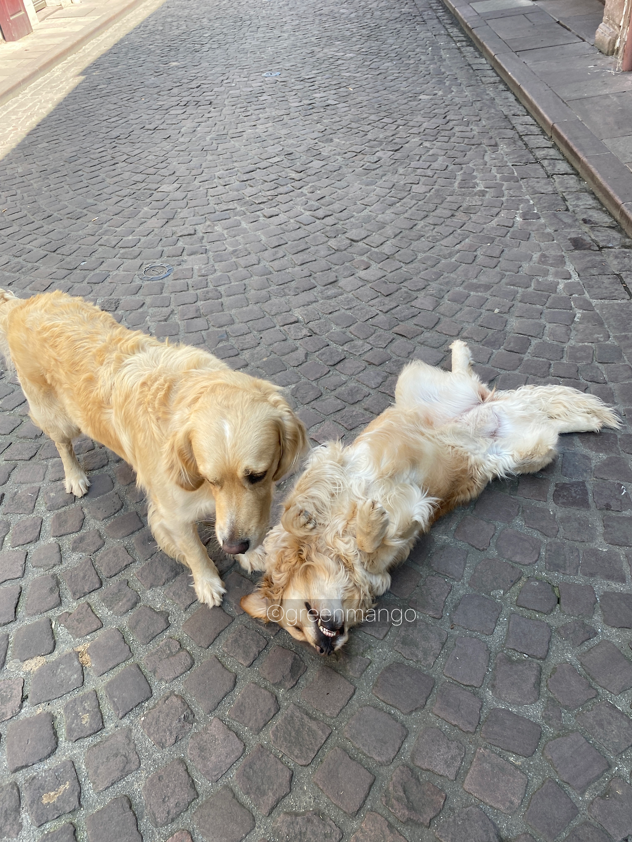 장 보러 가는 길에 만난 레트리버 한 쌍은 또 어찌나 사랑스럽던지. 도미 비늘처럼 윤기 나는 모발을 흩날리며 우아하게 등장해서는, 나와 눈이 마주치자마자 발라당 배를 까고 누워버린다.