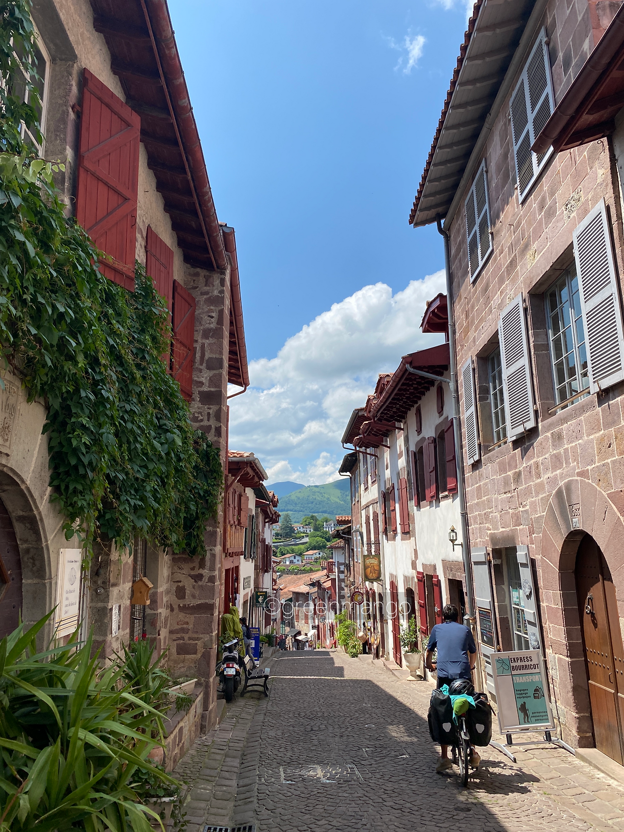 생장피에드포르 기차역에 내려 순례자 사무소를 찾아 좁고 경사진 골목길을 오른다. 바닥엔 투박하게 조각낸 코블스톤이 오밀조밀 박혀 있다. 길 양쪽으로는 하얀 회벽에 빨간 지붕을 얹어 놓은 귀여운 전통가옥들이 나란히 서 있다. 버건디빛 나무로 덧댄 창틀에는 알록달록 꽃화분이 가득하다. 중세 어느 즈음을 배경으로 한 동화 속 마을에 들어온 듯한 기분이다.