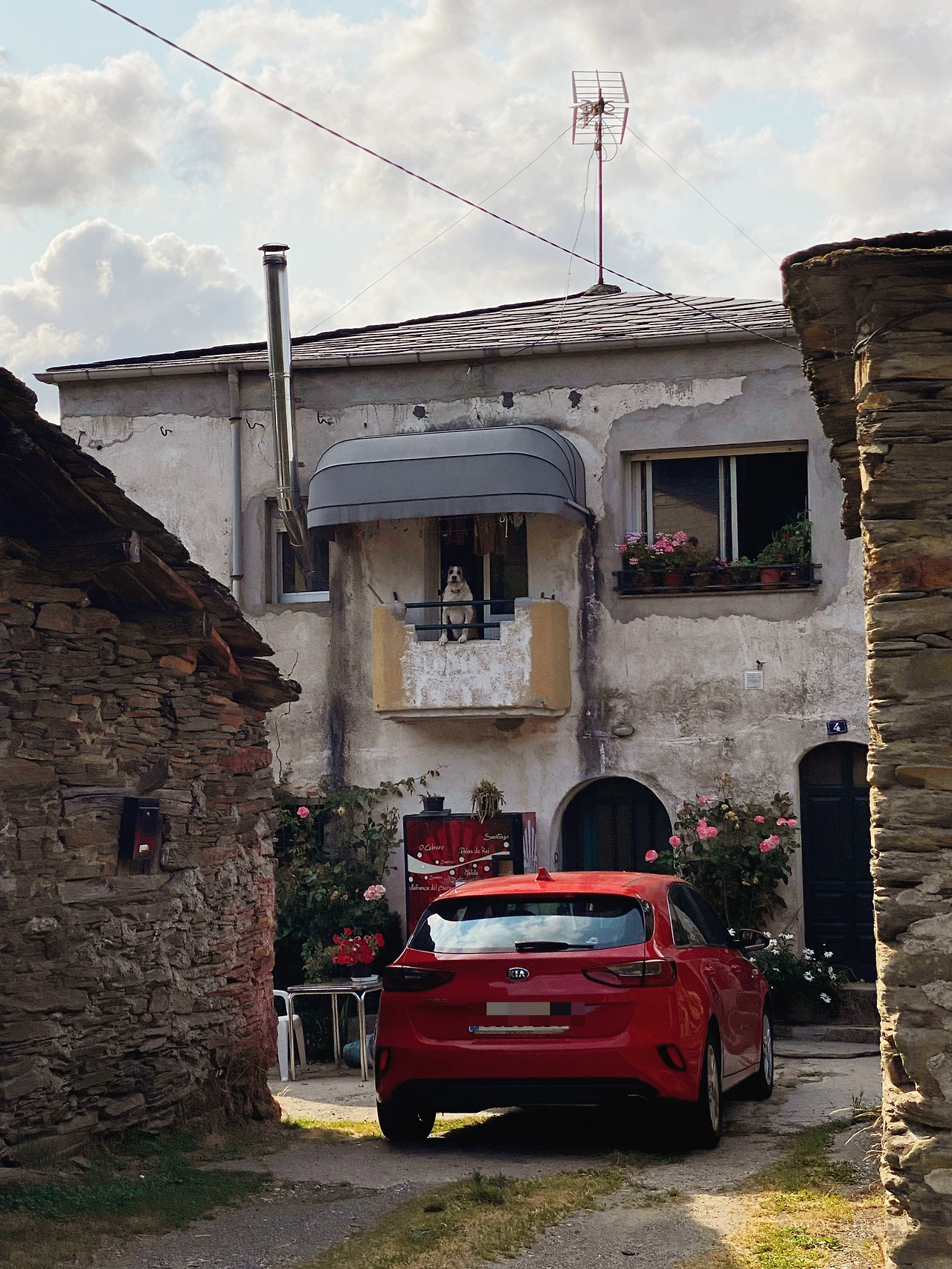 알베르게를 나서는데 어디선가 들려오는 '월월월' 우렁찬 멍멍이 소리에 발을 멈춘다. 발원지가 어디인고 두리번 찾아보니 건넛집 2층 테라스다. 난간을 잡고 서서 박박박 짖고 있는 어깨가 떡 벌어진 우람한 강아지. 아, 귀여워. 이런 사랑스러운 생명체들이 이 세상에 존재한다는 것이 새삼 감사하다.