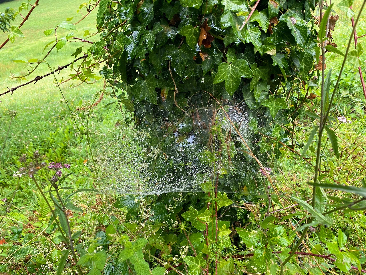 거미줄에 맺힌 빗방울이 영롱하기도 하다. 알알이 탱글 하게도 열렸다.