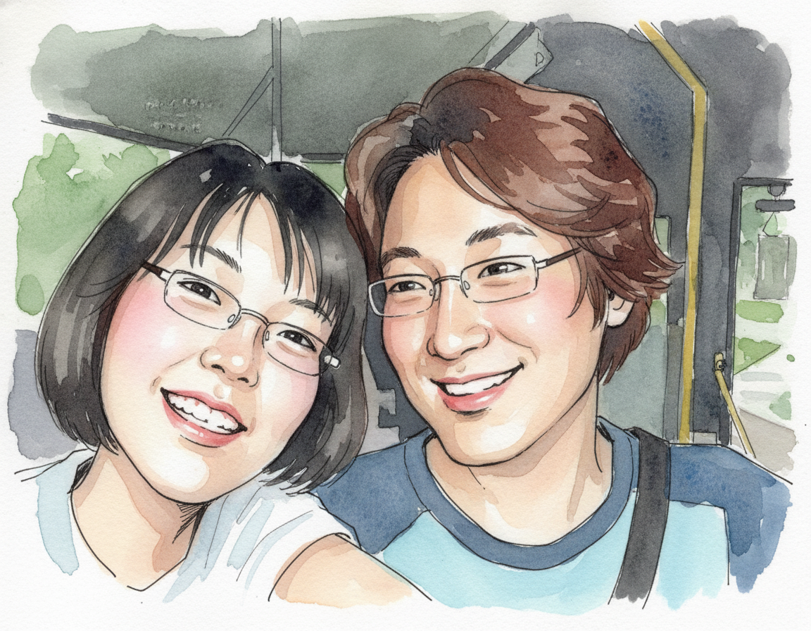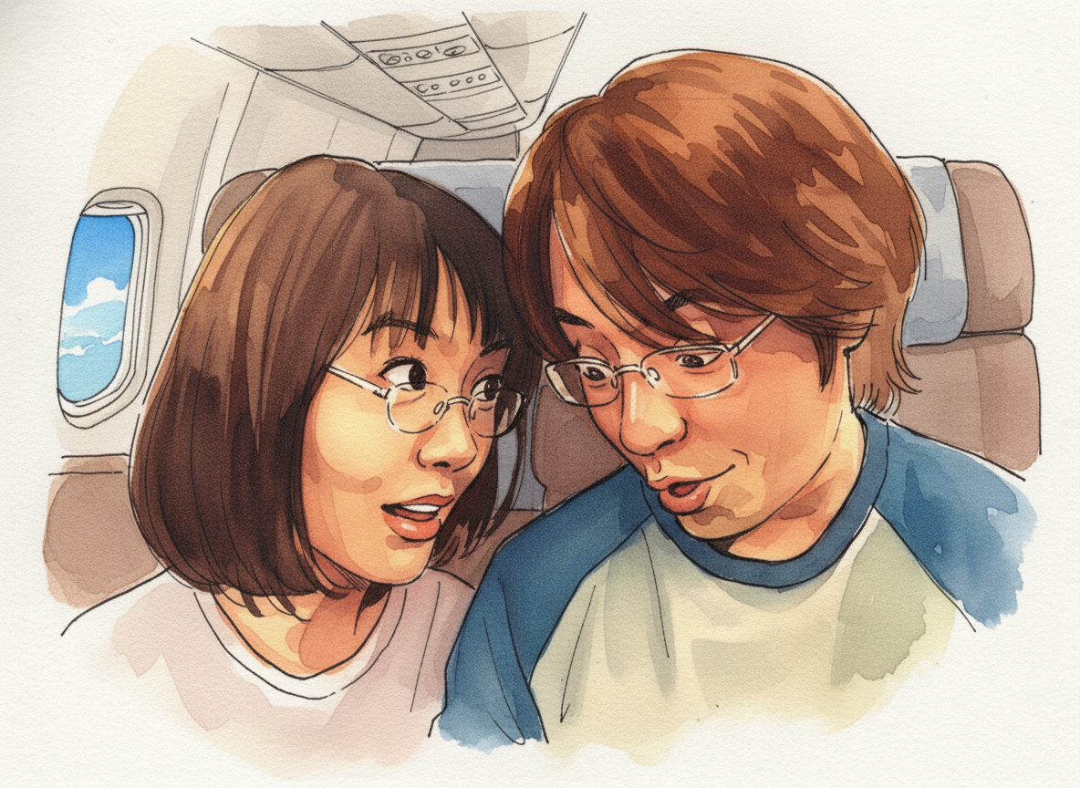 비행기에 올라탄 순간, 서로의 얼굴에 웃음이 번졌다. 정말 우리가 외국으로 떠나는 걸까. 제주도를 갈 때를 제외하면 비행기를 타본 적도 없었다. 창문 밖으로 구름이 흘러가고, 햇살이 하늘 위를 미끄러지듯 번져 있었다. 그 장면 속에서 우리는 어쩐지 세상이라는 바다로 막 나아가는 두 사람 같았다.