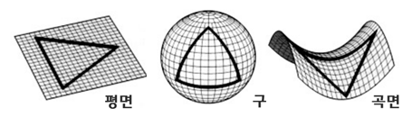 우리는 삼각형 내각의 합은 180도라고 우리는 배우거든. 그러나 의심을 가지고 생각해보면 항상 그렇지 않다는 것을 알 수 있어. 지구 위에 엄청나게 큰 삼각형을 그린다면 그 삼각형의 내각의 합이 180도 일까? 아니야 구에 위치한 삼각형의 내각의 합은 180보다 더 커. 따라서 삼각형 내각의 합이 180도라는 것은 평면에서는 타당하지만 3차원적인 공간에서는 다를 수 있어. 원이나 굽어진 평면에 있을 때는 내각의 합이 달라질 수 있거든. 그래서 아무리 당연하게 보이는 것이라도 의심하면 새로운 생각들을 할 수 있게 되는 거야. 우리가 알고 있는 당연한 것도 의심하다 보면 다르게 생각해볼 수 있거든. 위대한 사람들의 출발은 모두 의심에서 시작한다고 볼 수 있어. 이들의 의심이 세상을 발전시키는 원동력이 된 거야.