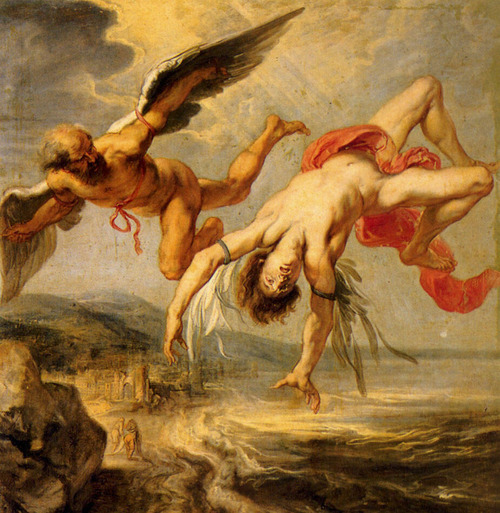다이달로스는 아들에게 단단히 주의를 주었어. 처음에는 아버지를 따라 조심조심 날았지. 탈출에 성공하자 기쁨에 들뜬 나머지 하늘 높이높이 올라갔어. 자유롭게 날 수 있는 기쁨을 만끽하고 싶었던 거지. 태양에 가까워질수록 이카로스의 밀랍은 점점 녹았고, 날개는 떨어져 버리고 바다로 빠져 죽게 된 거야. 그래서 그가 떨어진 바다의 이름이 이카로스 해가 된 거야.
