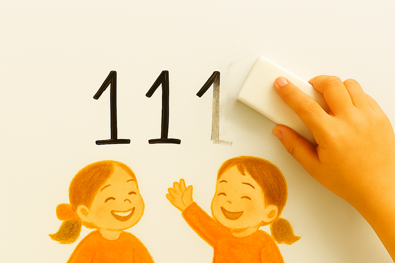 "아빠, 111에서 숫자 1을 빼면 몇이게?"