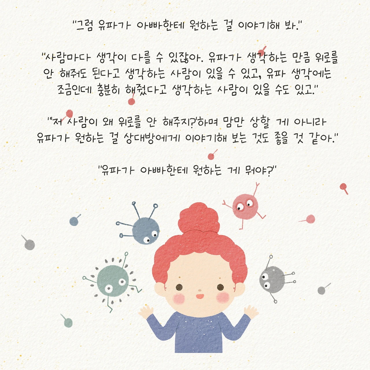 유파 씨 자신이 원하는 것이 무엇인지 알고 그것들을 잘 만들어가길 바랍니다.