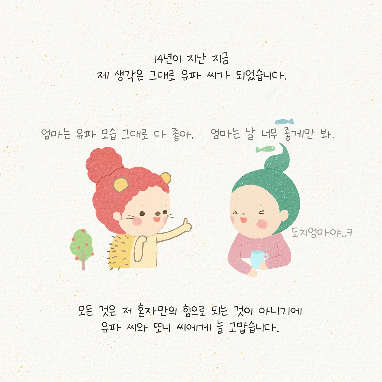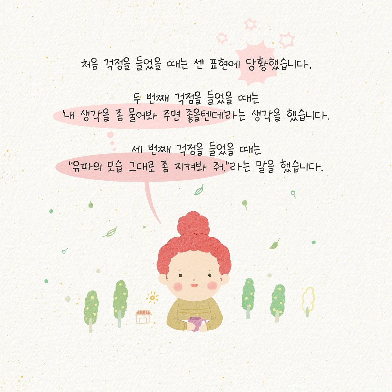 많은 사람들의 우려와는 달리 저와 많은 시간을 보낸 아기 유파 씨는 사람들과 어울려 지내는 것을 좋아하고, 필요한 배움들을 이어가고, 자신에 대한 믿음이 건강하게 잘 자란 청소년이 되었습니다.