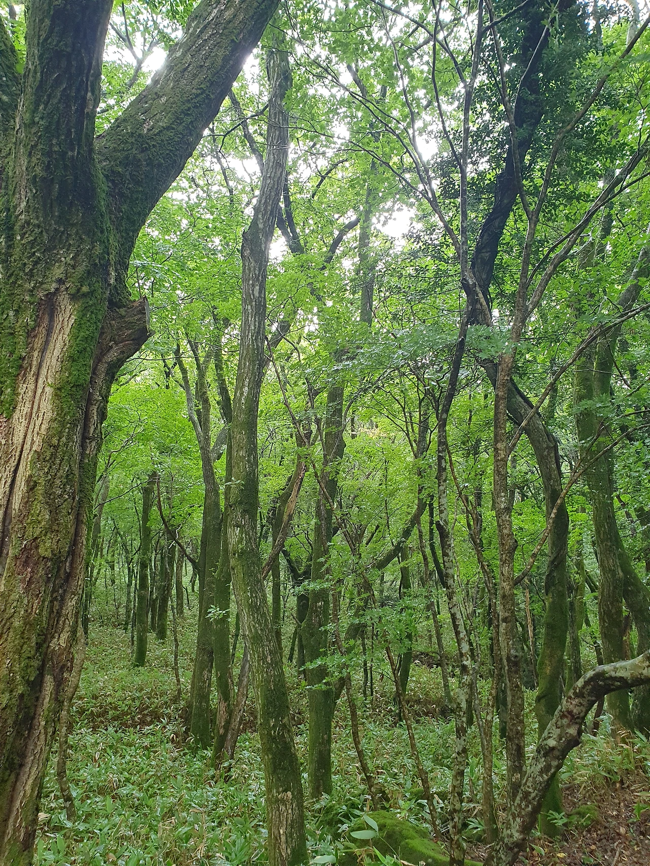 차를 잠시 멈추고 내려서 사진을 찍고 싶다. 폭우가 쏟아진다. 다시 창문을 닫고 목적지를 향해 부지런히 올라간다. 어리목 매표소 거의 다다를 무렵, 키 작은 나무 숲 동굴이 동화 속 숲 속 마을처럼 느껴진다.