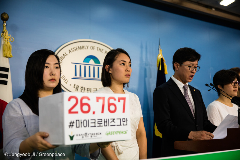 여성환경연대는 지난해부터 마이크로비즈 퇴출을 위해 뛰기 시작했고, 그린피스 서울사무소도 그 경주에 함께 했습니다. 지난 7월 9일 시작된 그린피스의 마이크로비즈 규제 서명에 무려 2만 6천 여명의 시민들이 참여해 주셨습니다.
