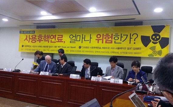 우리나라 원전에서 사용후핵연료 저장수조 사고가 발생할 시, 그 재앙의 규모에 대해 분석한 결과가 최근 발표되었습니다. 지난 10월 대한민국 국회에서 열린 한 토론회에서 원자력 정책 관련 최고 권위자인 본 히펠(Frank N. von Hippel) 프린스턴대 교수와 재미 핵물리학자인 미국천연자원보호협회(NRDC)의 강정민 박사가 우리나라 사용후핵연료 저장수조의 위험을 경고한 겁니다. 이들은 고리 3호기 사용후핵연료 저장수조에 화재 사고가 발생했을 때 최악의 경우 우리나라 국토의 50%가 넘는 5만4천㎢가 피해를 입고, 전체 인구의 절반가량인 2,430만 명이 피난을 가야 될 수 있다고 경고했습니다.