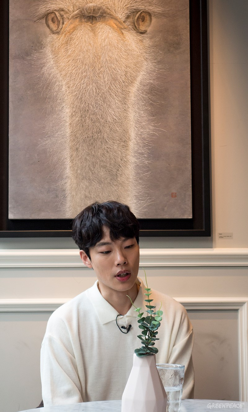 류: 일단 친구들이 제가 환경보호 활동에 관심이 있다는 것에 대해 많이 놀랐어요. 저도 그린피스에서 어떤 캠페인을 하고 있는지 보게 되잖아요. 친구들이 그린피스와 관련해 하나둘씩 물어보면 대답도 해주고 자연스럽게 그린피스 활동 추천도 하게 되고. 주변에서 그런 제 모습을 보고 많이 놀라신 것 같아요. 팬분들이 많이 참여를 해주시는 것에 항상 감사함을 갖고 있어요. 저도 그게 감동적인 지점이에요. 팬들과 소통하기 위해 인스타그램 등 SNS를 많이 이용하고 있어요. 처음엔 감성적인 글귀라든지 좋아하는 사진을 찍어서 팬들에게 보여줬어요. 요즘에는 그린피스뿐 아니라 다른 좋은 캠페인이 있으면 팬들에게 소개해주는 용도로 많이 활용하고 있어요. 팬들도 매우 즐거워하시고요. 이제는 제가 따로 소개하지 않아도 팬분들이 직접 좋은 일을 찾아서 하시는 것 같아요. 팬분들의 이런 활동에 대해 굉장히 뿌듯하고 감사하게 생각해요.