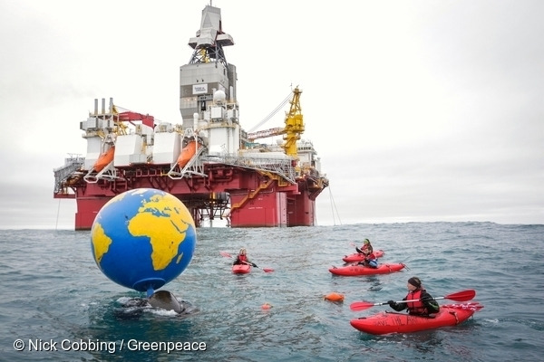 지난 8월 18일, ‘아틱 선라이즈'호의 활동가들은 고무보트와 카약을 타고 차가운 북극 바다를 헤치고 노르웨이의 가장 북쪽에 위치한 스타토일(Statoil)의 석유 시추장에 들어가 거대한 지구본을 띠웠습니다.