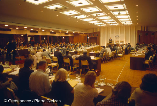 1970년대 중반, 그린피스의 초기 포경 반대 캠페인은 이전에는 한 번도 보지 못했던 방식으로 포경 업계에 전 세계의 관심을 집중시켰습니다. 고래가 잔혹하게 죽임을 당하는 영상과 사진을 대중에게 보여줌으로써 대중의 여론을 ‘포경 반대’로 돌릴 수 있었습니다. 고래의 포획량이 줄어들자, 포경 국가들은 훗날 ‘국제포경위원회(IWC)’로 자리 잡게 된 조직을 만들어 냈습니다.