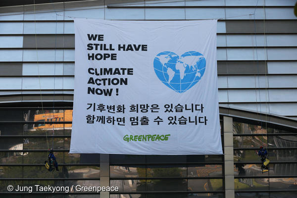 지금 제 이메일 함에는 세계 각국 그린피스 사무소에서 전해 온 희망의 이야기가 가득합니다. 스위스의 할머니들이 기후변화 문제로 정부를 고소한 이야기, 팔레스타인, 시리아, 레바논의 젊은이들이 레바논 남부 여성협동조합에 태양광 패널을 설치한 이야기, 석탄 화력 발전소에 반대하며 올리브 나무를 베지 못하게 막은 터키 공동체 이야기, 석탄 개발을 위해 함바흐 숲을 파괴하는 데 반대하는 행진에 더 많은 독일인이 참여하고 있다는 이야기…