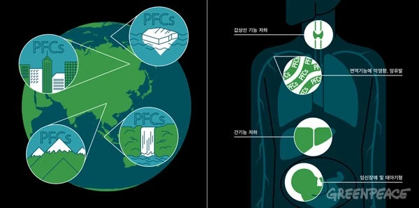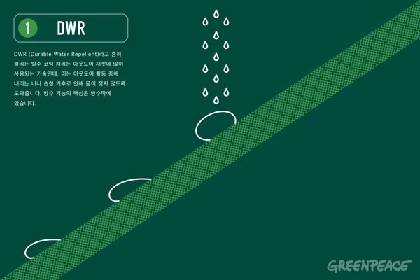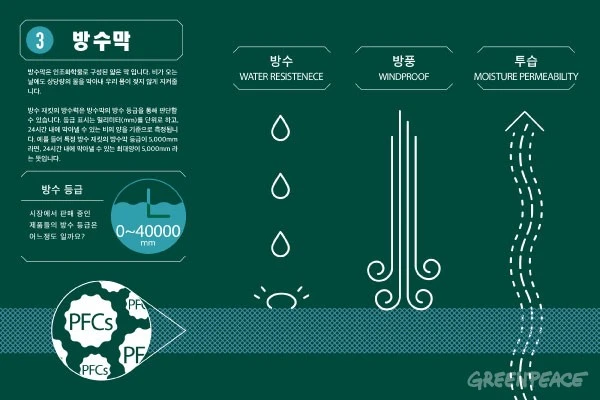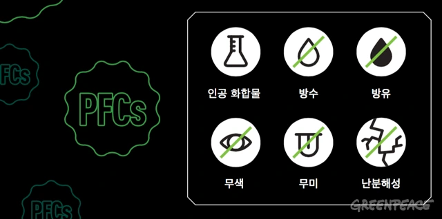그런데 발명된 지 반세기가 지나면서 PFC의 유해성도 알려졌습니다. PFC가 분해되지 않고 체내에 축적돼 여러 가지 질병을 일으킨다는 연구 결과가 속속 발표되고 있습니다. 그래서 그린피스를 비롯한 여러 단체들이 PFC의 퇴출을 위한 캠페인을 벌이고 있죠. 하지만 아웃도어 용품 기업들은 여전히 소극적인 자세를 취하고 있습니다.