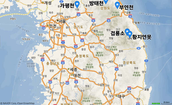 이후 그린피스는 세계적인 규모의 아웃도어 시장을 이루고 있는 대한민국에서 PFC가 미치는 영향권을 확인하기 위해 다시 한번 탐사에 올랐습니다. 국내 조사 대상 지역은 총 다섯 곳으로, 선정 기준은 '국내 최상 급수가 흐르는 곳'이었습니다. 이에 따라 '가평천', '방태천', '부연천'의 최상류, '검룡소 연못', '황지 연못'이 조사지역으로 선정되었습니다. 이 지역들은 모두 우리나라 상수도의 근원이며, 멸종 위기 동식물의 마지막 안식처가 되어 주는 우수 생태 구역 이기도 합니다.