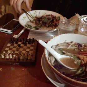 좋아하는 베지테리언 식당에서 a와 저녁을 먹었다.