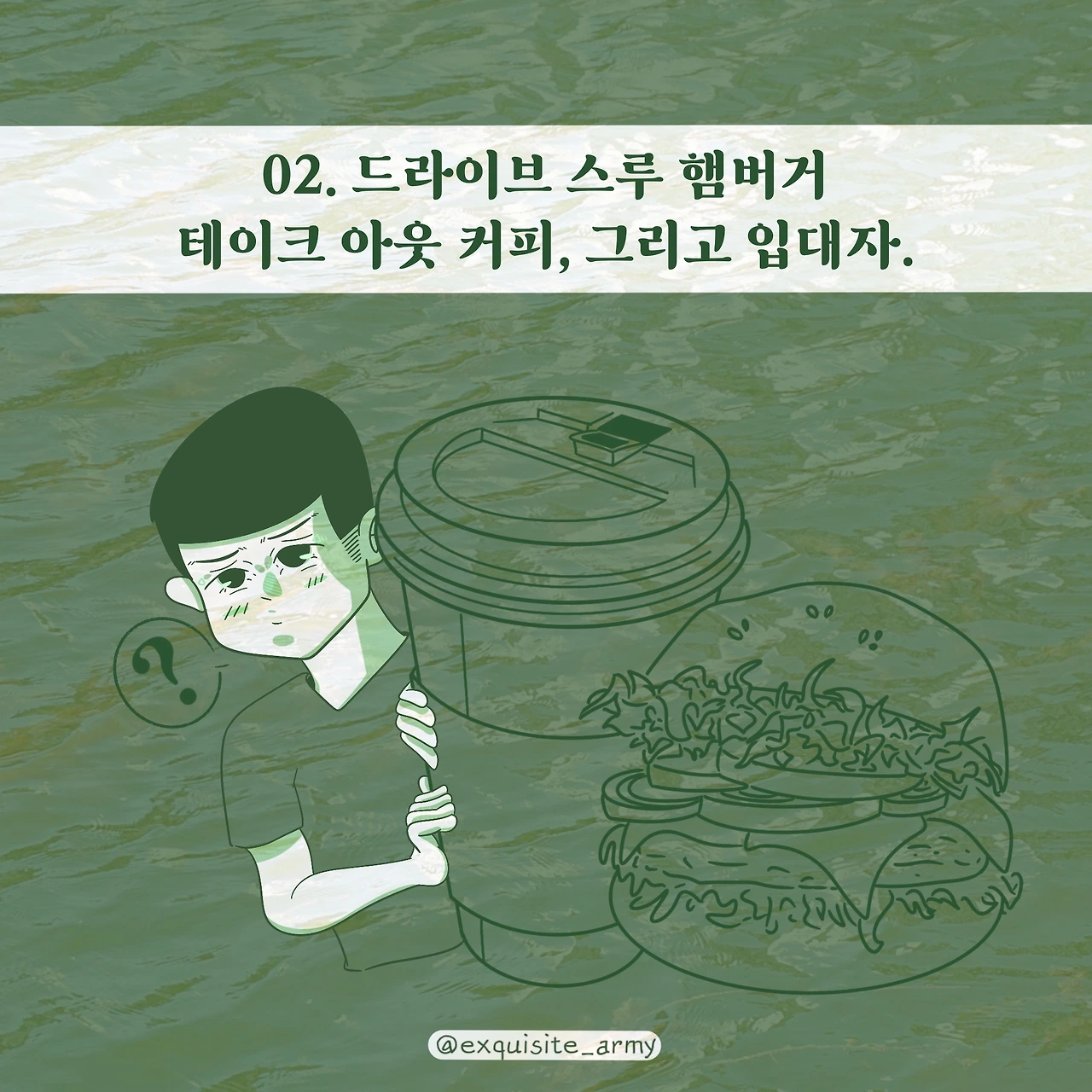 - 02. 드라이브 스루 햄버거, 테이크 아웃 커피, 그리고 입대자.