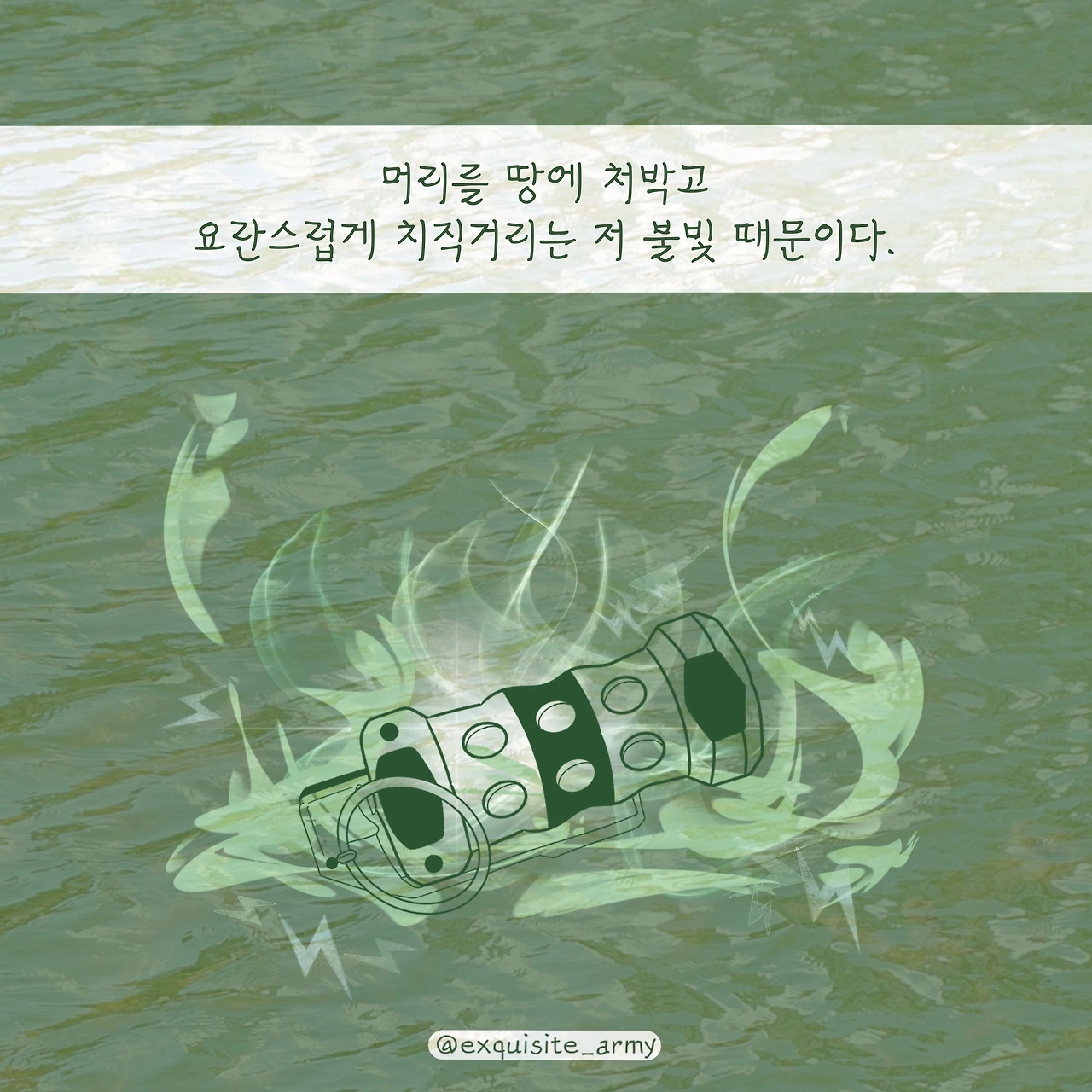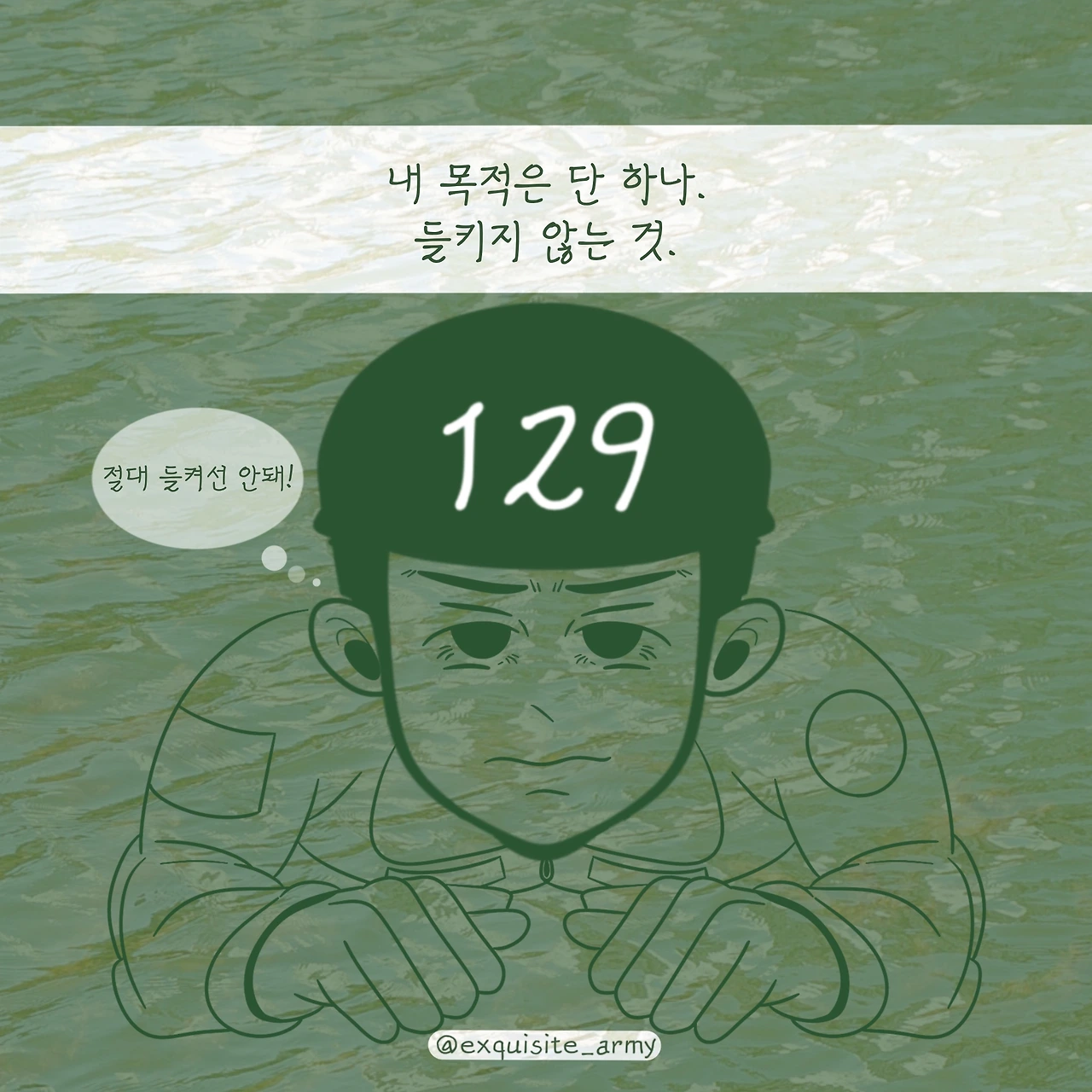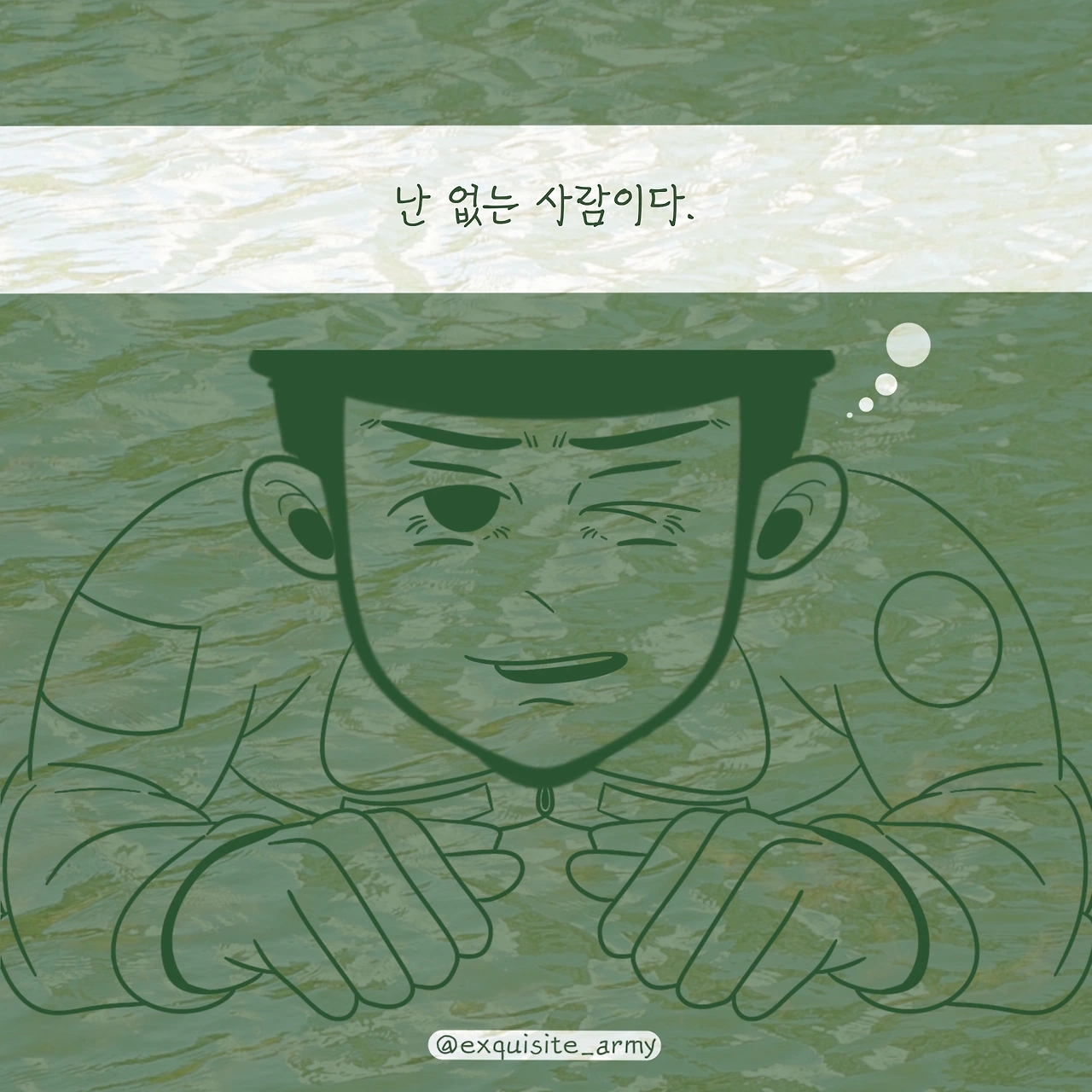 녹색 군복이 빛을 잃고, 입안에는 흙돌이 씹히는 상황 속.