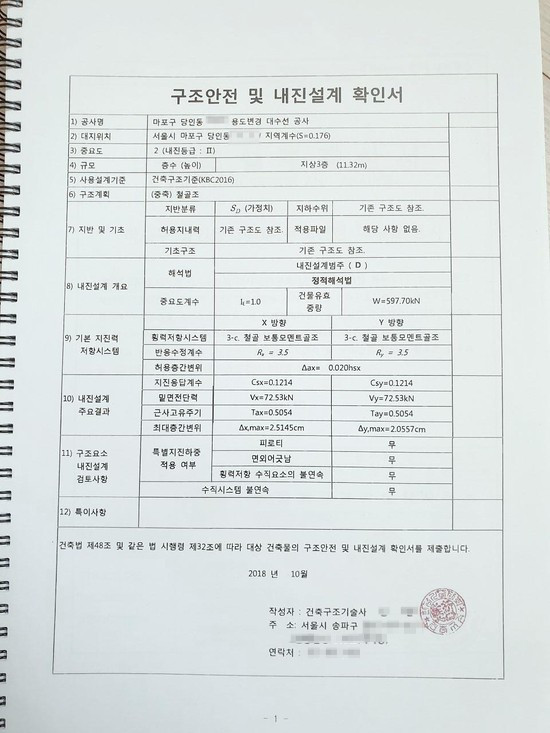 가끔 구조진단에 대해서 질문을 하는 분들도 계신데, 이것은 준공검사에도 들어가는 필수 불가결한 서류이므로 해야만 하고 무엇보다도 집의 안전을 위해 필요하다.