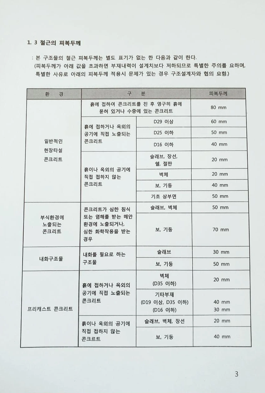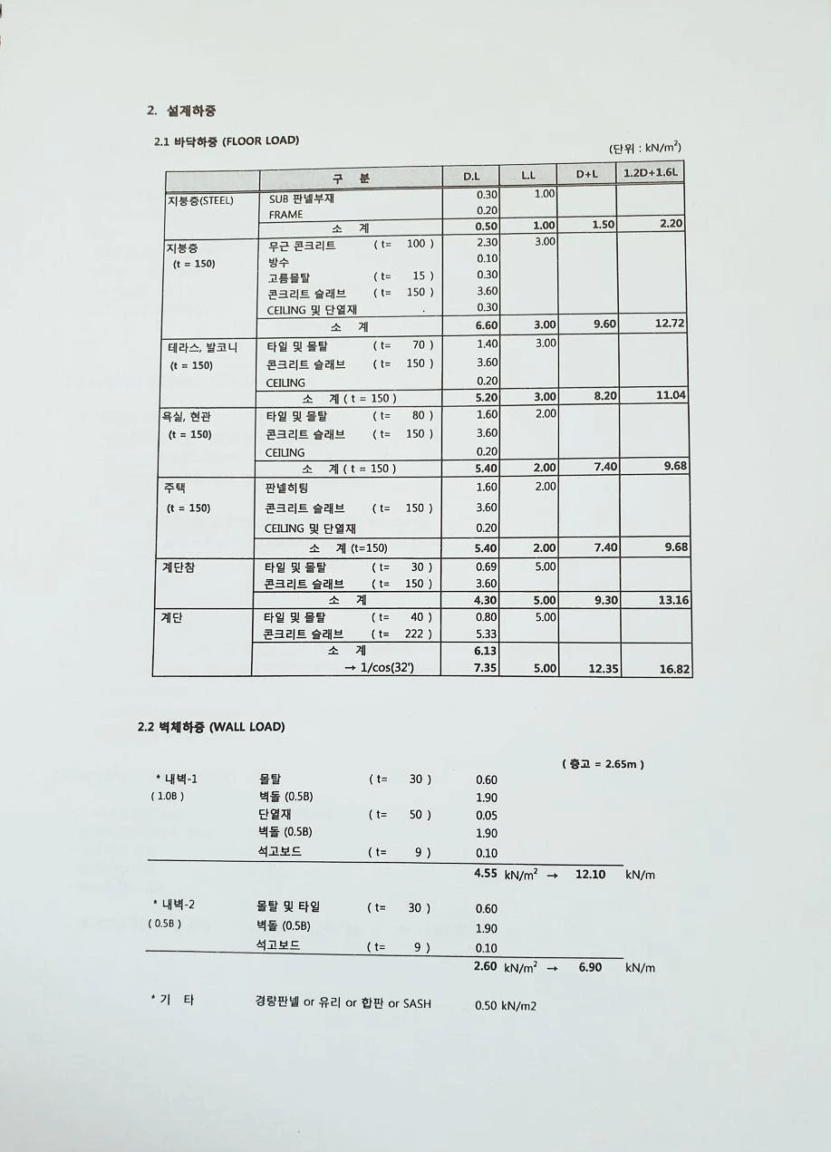 하중과 철근 두께에 대한 구조 계산