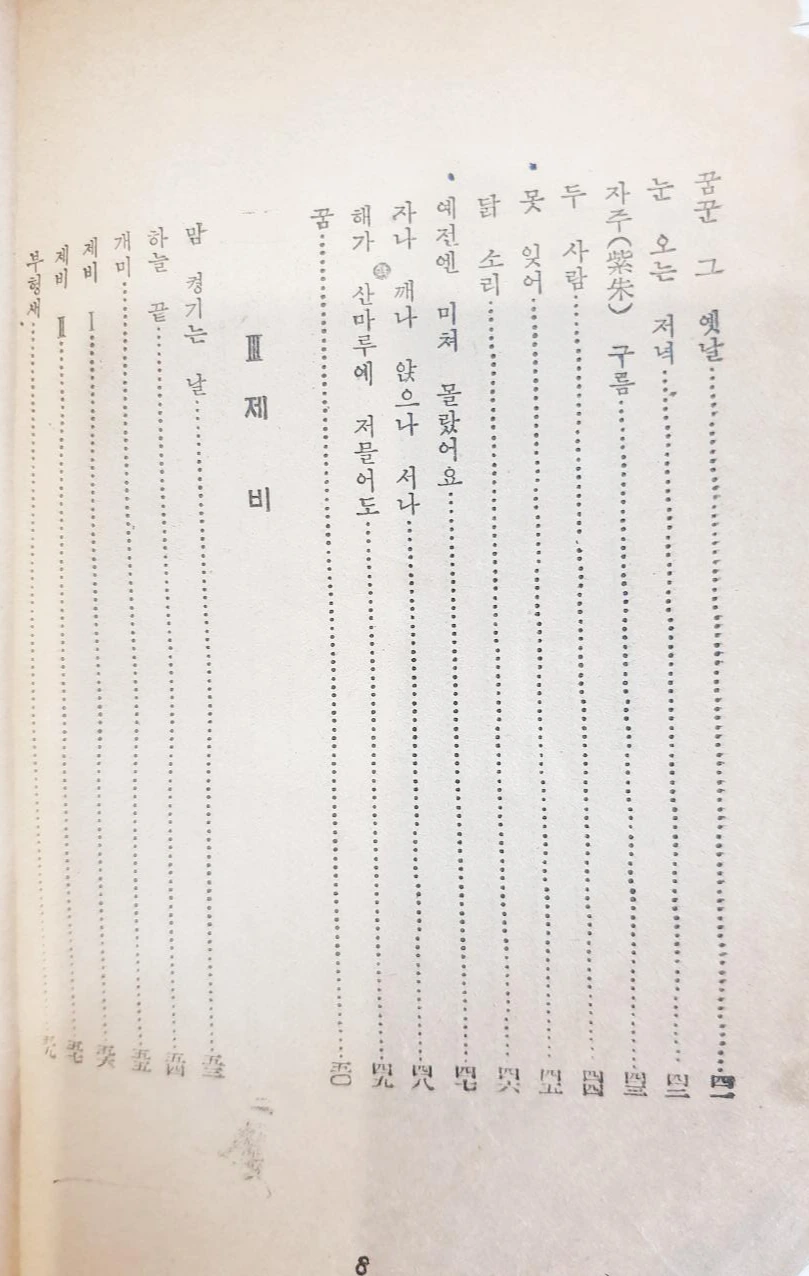 시집의 목차