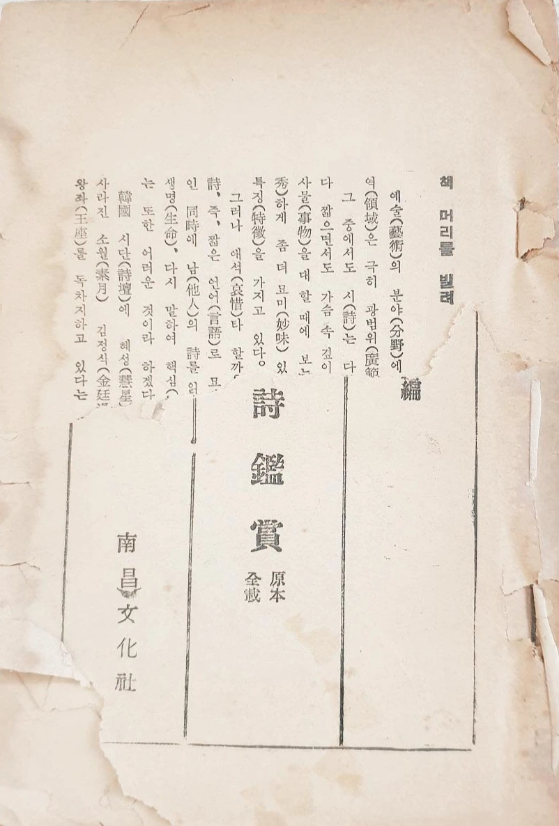 1966년 11월 남창문화사 발행, 정가는 150원, 시 뒤에 감상을 단 형식