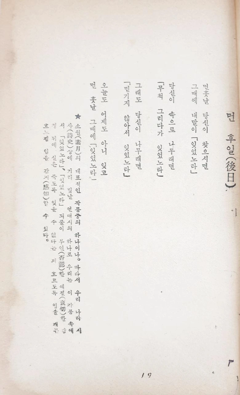 소월의 시 제목처럼 나는 아주 <먼 후일>인 지금, 다시 이 시집을 꺼내서 아직도 어린 시절에서 영영 멈춘 친구를 추모한다.