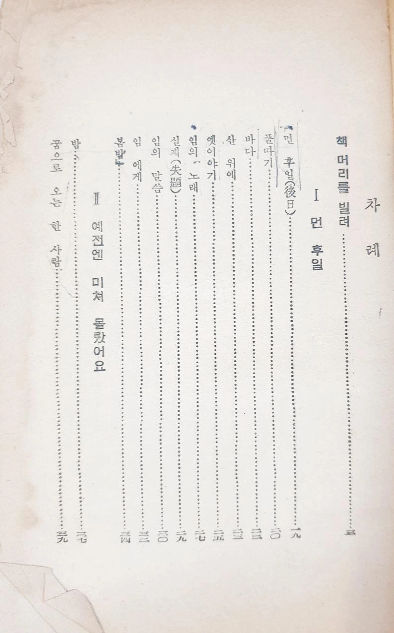 앞 뒤 표지가 다 떨어져 나가고 속만 남았다. 시간의 흔적이고 세월의 흔적이고, 또 잘 지녀야지라는 마음이 모자란 어린 시절이어서 그랬다.