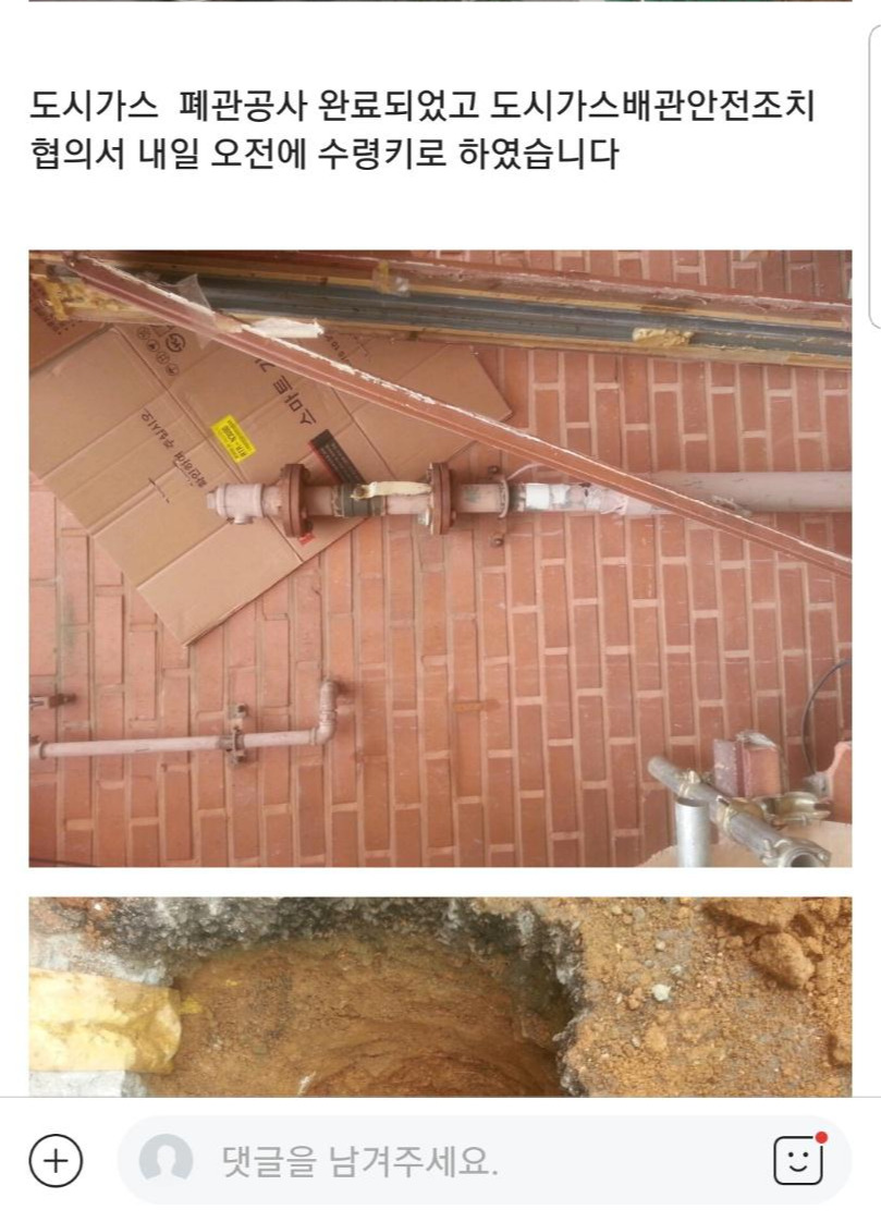 도시가스 배관 폐공과 도시가스 배관조치협의서 받기