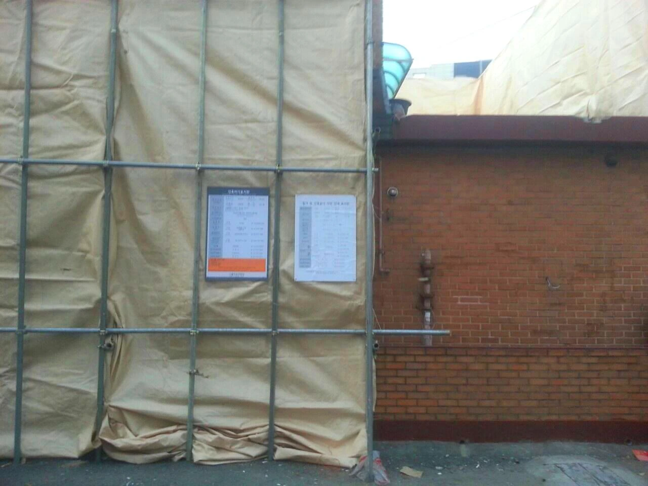 가설재 바깥에는 건축허가 표지판, 철거 등 건축공사 사전 안내 표지판을 설치했다.